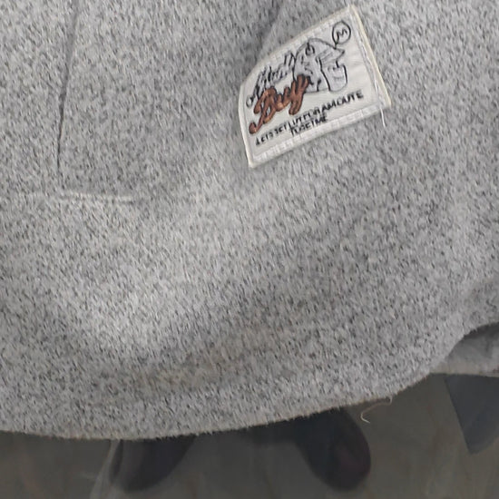 Maintenance is simple and hassle-free. You can machine wash this garment on a cold cycle with similar colors to protect the white and gray contrast. The high-quality material is resistant to pilling and shrinking, ensuring it retains its shape and softness even after multiple washes.
